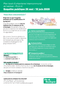 L’enquête publique concerne tous les habitants des 15 communes de Vie et Boulogne. Elle permet à chacun de prendre connaissance des modifications du PLUi-H et d’exprimer son avis avant son approbation.